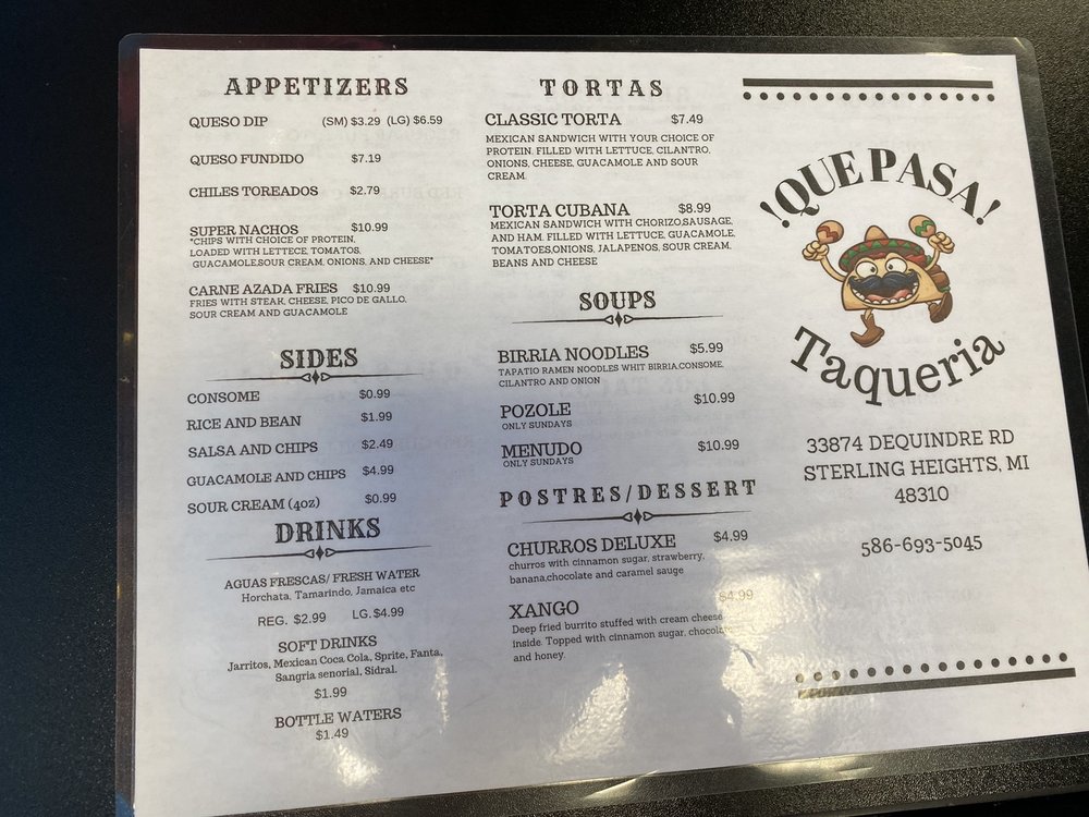 Welcome to Que Pasa Taqueria, where flavor takes center stage! Nestled on Dequindre Rd in Sterling Heights, MI, this gem serves up an array of mouthwatering tacos that keep patrons coming back for more. With a casual vibe and moderate noise level, it's perfect for group outings or a laid-back meal.
